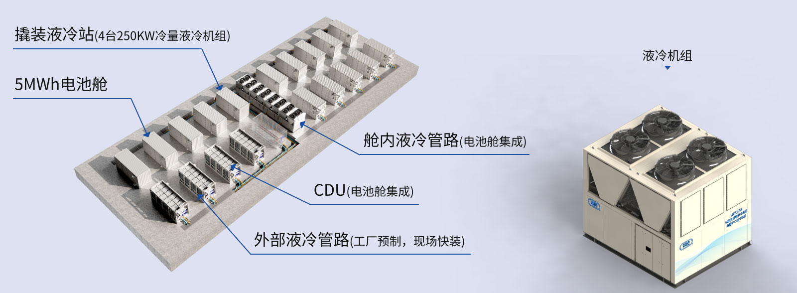 ★與單純依靠壓縮機制冷的常規電池艙液冷柜不同,雙良電池艙外集中式液冷選擇空氣自然冷卻和壓縮機制冷相結合的冷卻模式,采用一體化的液冷機組。